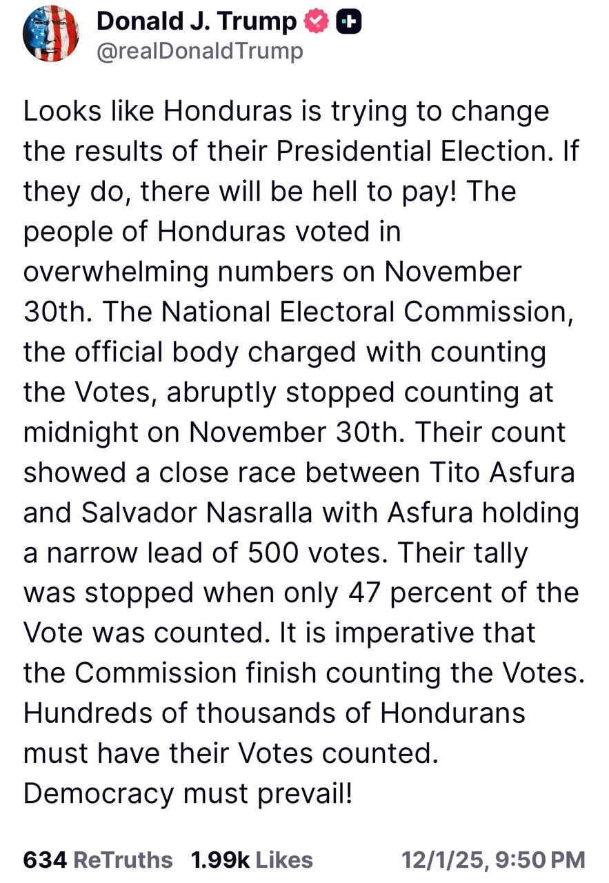 248 views | 8 days agoTrump issues open threat to Honduras over their (s)election |