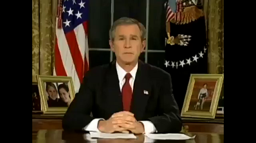 George W. Bush addressing the United States about the Iraq War in March 20, 2003 which could easily be a speech delivered by Donald Trump