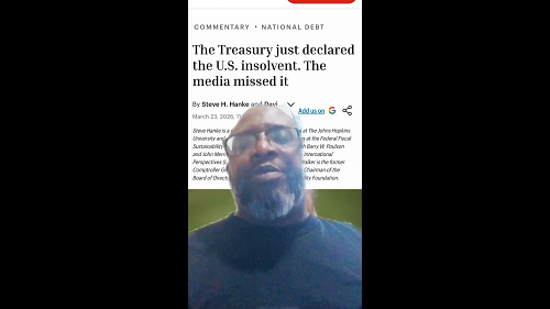 U.S. Treasury Department declared the United States "INSOLVENT"